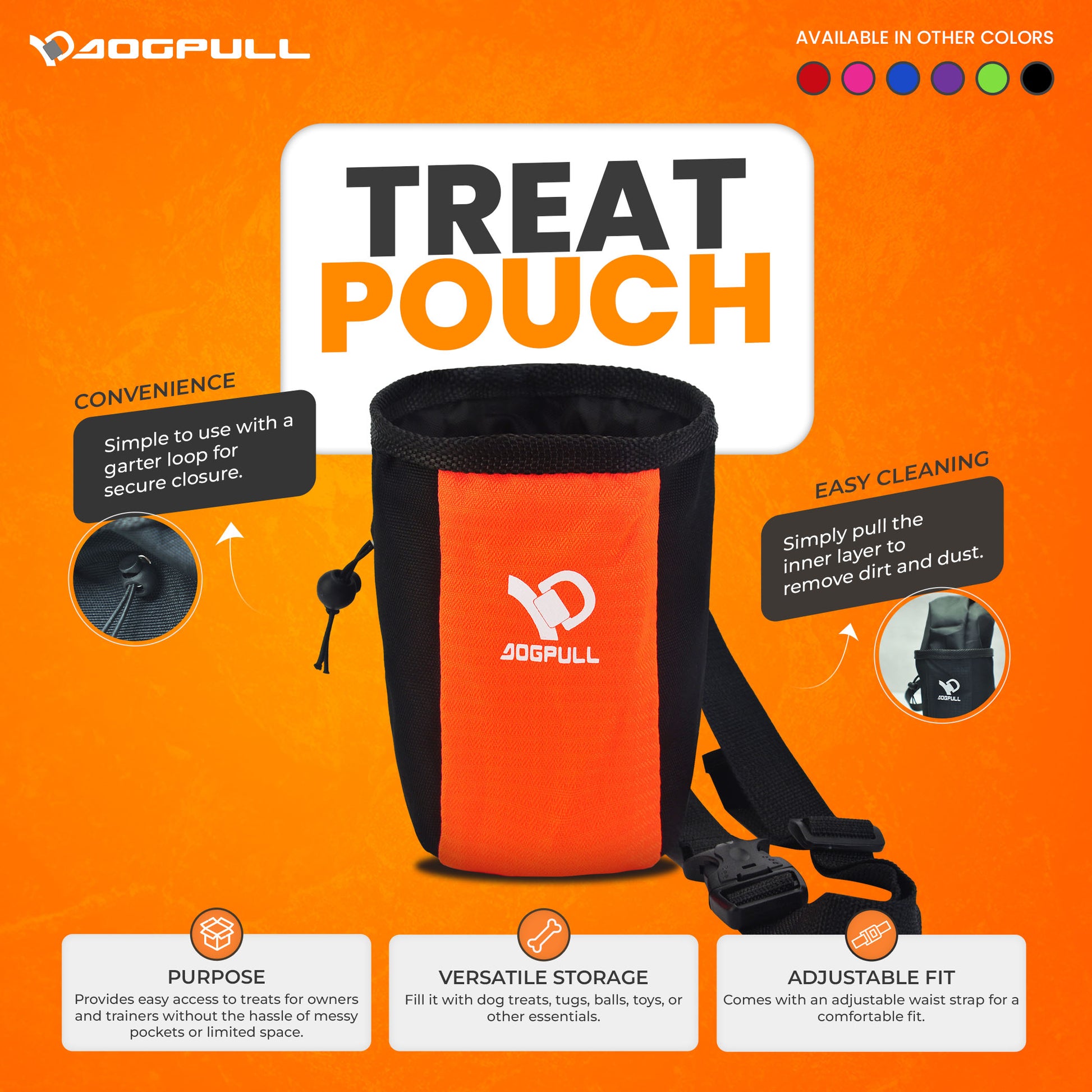 Keep your dog’s favorite treats and training essentials right at your fingertips with the Dogpull Treat Pouch. Designed for convenience, this pouch fits all your must-haves like treats, toys, tugs, and balls—making training sessions smoother and more efficient.